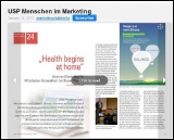 02.12.2012. Gute Nachrichten vom Marketing: Die jüngste Ausgabe von USP http://www.marketingclubberlin.de/medien/magazin-usp, der Zeitschrift des angesehenen Berliner Marketing Clubs Berlin, stellt das Projekt Gesundheitstage 3.0 bei Bayer Pharma vor. Der vierseitige Artikel zeigte Vorfeld und Hintergründe der crossmedia-Kampagnen-Planung im Hinblick auf Employer Branding auf. Text und Video komplettieren eine Reihe von Maßnahmen zur Gesundheitsförderung: Hierzu zählen eine Ergonomie-Broschüre für Mitarbeiter sowie die Kampagne „Dem Brustkrebs keine Chance!“ Eine Broschüre zum Thema 50+ aktualisiert die Aktivitäten zum demografischen Wandel.